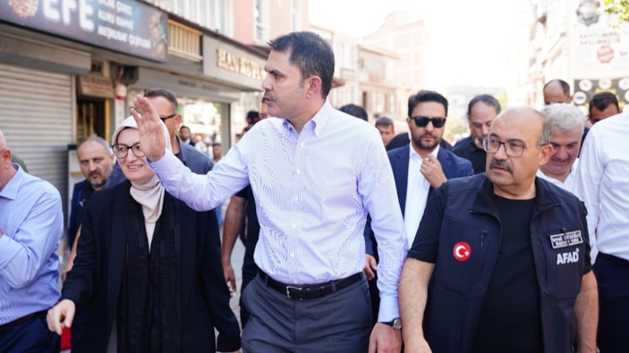 İlk olarak ilçe merkezinde vatandaşların taleplerini dinleyen Bakan Kurum, "Biz büyük afetleri, badireleri birbirimizden destek alarak aştık. Burada da aşacağız, hızlı bir şekilde yaralarımızı saracağız." ifadesini kullandı.