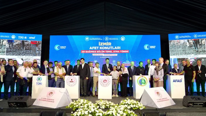 Ödemiş Kaymakamlığı önünde "İzmir Afet Konutları Temel Atma Töreni" düzenlendi.