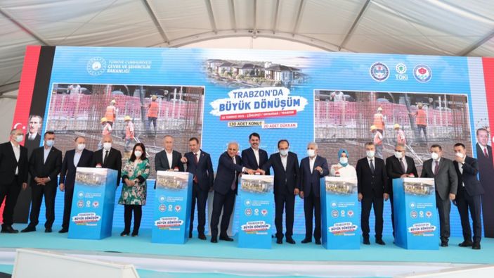 Bakan Kurum, Trabzon'da Çömlekçi Kentsel Dönüşüm Projesi temel atma törenine katıldı. Bakan Kurum, projenin birinci etabında 130 konut, 20 dükkan inşa edileceğini belirtti.