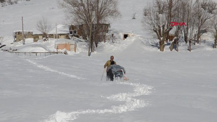 Minibüsle Alaniçi köyüne varan Arslan, yoldan 250 metre uzaklıktaki evine gidebilmek için diz boyunu geçen karlı arazide yürüdü.