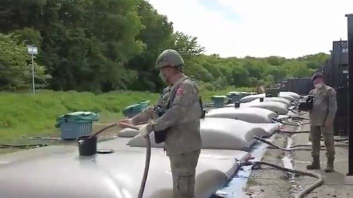 Burada tatbikattaki askerler için sahra mutfağı, yemekhane, duş ve tuvaletleri kuran Türk askerlerin temiz ve titiz çalışması NATO’dan da övgü aldı.