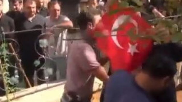 Barış Pınarı Harekatı'na tepki olarak basın açıklaması yapmak isteyen grubu bir vatandaş, Türk bayrağı açarak protesto etti. O anlar kameralara yansıdı.