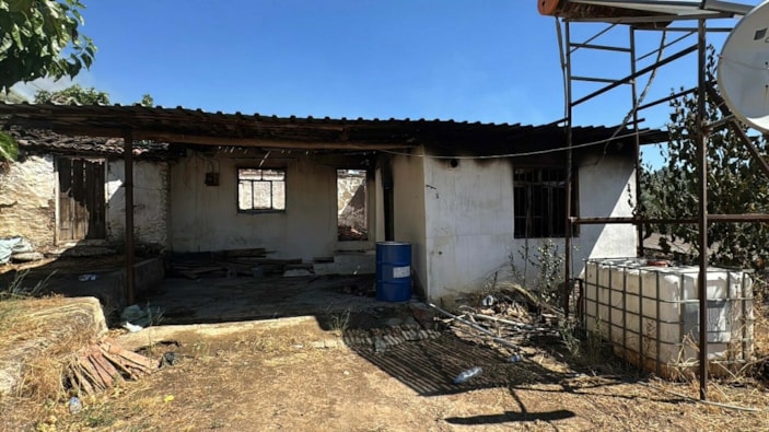 İzmir'in Ödemiş ilçesinde çıkan orman yangınında alevler, kırsal Karadoğan Mahallesi'ne sıçradı. Yangında zarar gören evler görüntülendi.