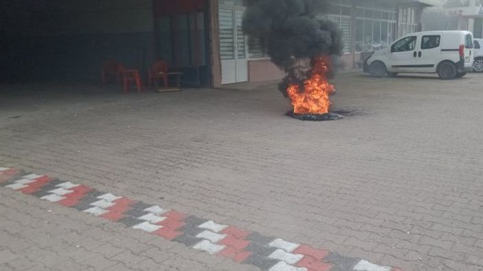 İşletmeciliğini yaptığı tamirhanenin önünde lastik yakarak Gaziantep FK müsabakasında yaşananları protesto eden Özcan Kocuk, hakemlere de küfürler savurdu.