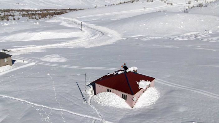 Hayatı olumsuz etkileyen yoğun kar yağışı nedeniyle kırsal alanlarda 2-3 metreye ulaşan kar, tüm evleri kapladı.
