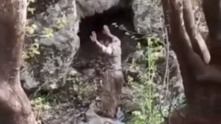 Irak'ın kuzeyinde devam eden Pençe-Kilit Operasyonu'nda Zap Vadisi'nde sıkıştırılan teröristlerin, mağaranın önünde gözaltına alınma anlarının kaydı paylaşıldı.