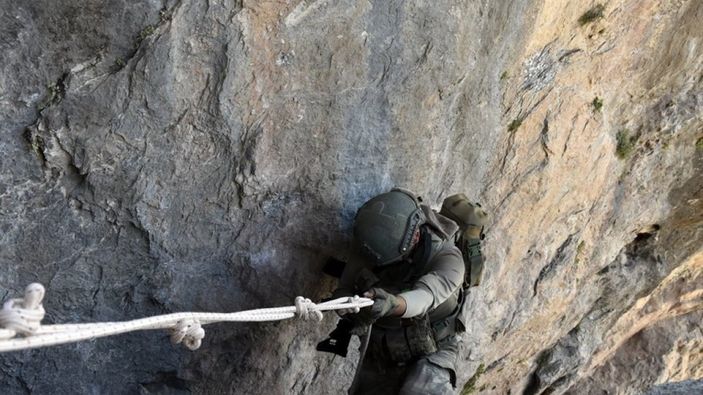 Pençe harekatlarıyla bölgede kuş uçurtmayan kahraman komandolar, zorlu arazi şartlarına rağmen teröristlerin inlerini başlarına yıkmaya devam ediyor.