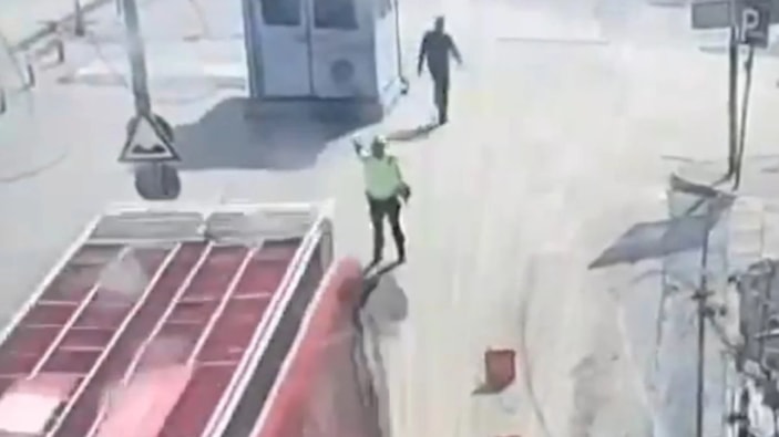 Trafik polisi, olaydan otobüsün sağına kaçarak yara almadan kurtulurken başlatılan soruşturma kapsamında şoför gözaltına alındı.