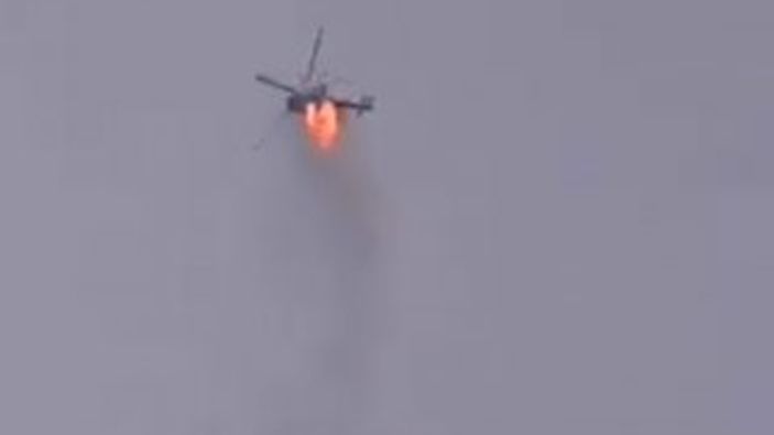 İdlib'te rejime ait helikopter düşürüldü VİDEO
