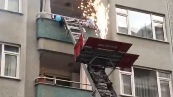 55 yaşına giren Kanat için yük asansörünün kabini maytap ve balonlarla süslendi. Kanat’ı arayarak balkona çıkmasını isteyen arkadaşları, o esnada yük asansörünü binanın 3. katına gönderdi.