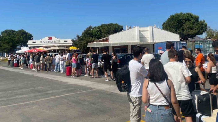 Muğla’nın Marmaris ilçesinde kapıda vize alan vatandaşların Rodos'a tekrar gidişleri başladı. Yolcular, limanda check-in noktalarından biletlerini onaylattıktan sonra gümrüklü alana geçti.