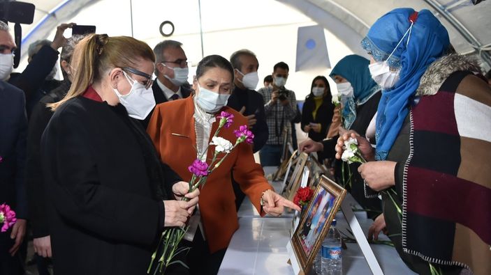 Bakan Pekcan'ın karanfil verdiği aileler, çocuklarının dağa nasıl kaçırıldığını anlattı. Ailelerin yanında olduklarını belirten Pekcan, anne ve babaların en kısa sürede evlatlarına kavuşmaları temennisinde bulundu.