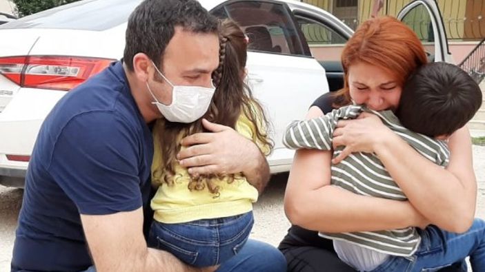 Sağlıkçı anne ve baba, çocuklarına gözyaşlarıyla kavuştu