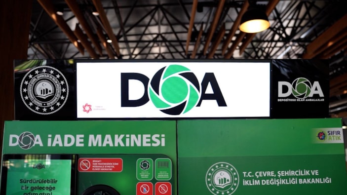 'DOA' logosu bulunan plastik, cam şişe ve alüminyum kutular artık çöpe değil, Depozito İade Otomatları’na bırakılıyor.