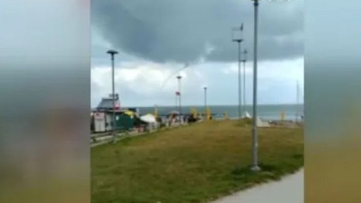 Sakarya'da denize girmek için sahile gelen vatandaşlar, aniden bastıran sağanağın ardından Karasu Limanı yakınlarında denizde hortum oluştuğunu fark etti.