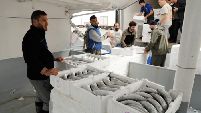Denizde istavrit, hamsi, zargana, çinekop, ne bulduysa yiyor. Palamut obur balık, hepsini yiyen o. Palamudun tanesi 1,5 kilogram oldu. Balığın çifti 120-130 liraya düştü. Buzhaneler doluyor. 45 senedir balıkçıyım, böyle palamut görmedim. Balıklar çok iri oldu, torik oldu. Nadir olan bir sene bu sene. Limandan geceden bu yana iç pazara 200 palamut dolu tır gönderdik, halen de devam ediyor. 800 ile 1500 kasa arası balık var her tırda. Balık dün Ünye'deydi, bugün Samsun'a geldi, yarın Sinop'a gidecek. Batıya döndü balık. 40-50 mil açıktan kitle halinde gidiyor. Bütün Türkiye'nin, Akdeniz, İzmir, Mersin'in takımları burada. Kamyonlar ne limana sığıyor ne trafiğe. Deniz suyu şu an 20 derece, 15 derece olması lazım.