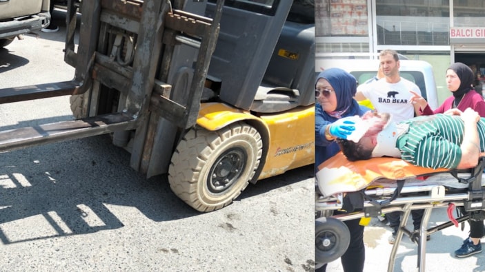 Forkliftin bıçak bölümüne başıyla çarpan genç, yere savruldu.