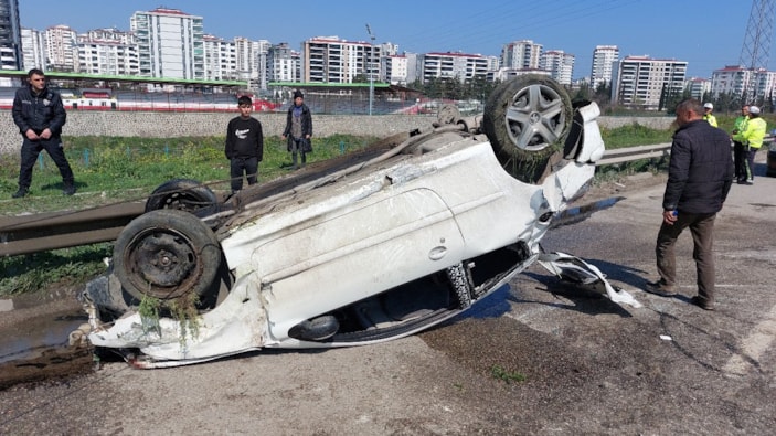 Samsun'un Canik ilçesinde bir otomobil, sürücüsünün direksiyon hakimiyetini kaybetmesi sonucu bariyere çaparak takla attı.