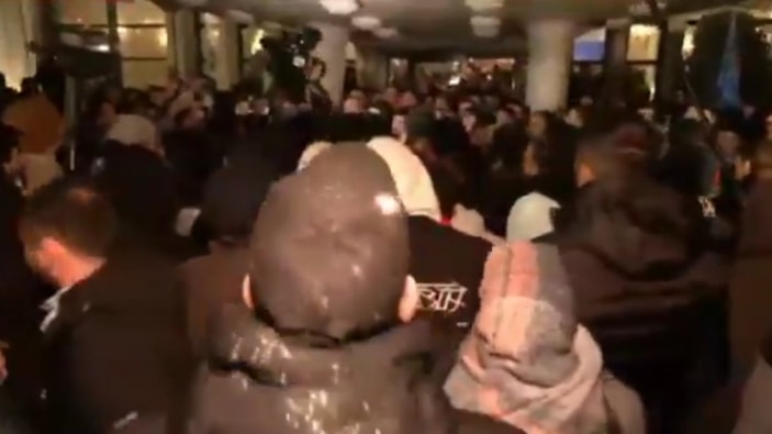 İBB’nin Saraçhane’deki merkez yerleşkesine gelen eylemciler, sokak çağrısı yapan CHP Genel Başkanı Özgür Özel'e, "Özgür gelsene biber gazı yesene" diyerek tepkide bulundu.