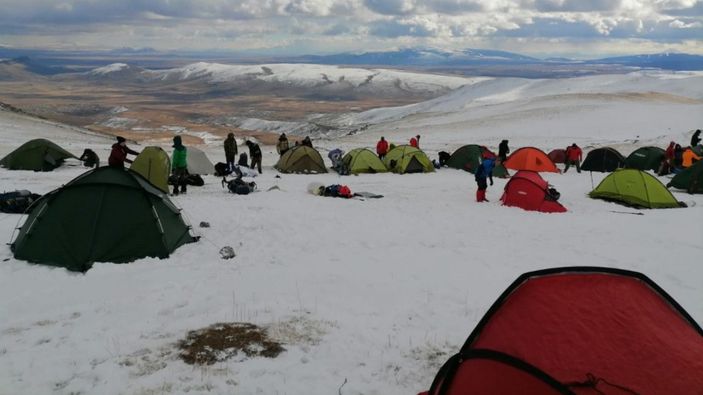 Kars'ın Sarıkamış ilçesine gelen Türkiye Dağcılık Federasyonu üyeleri, 1'inci Dünya Savaşı'nda Enver Paşa komutasındaki Osmanlı ordusunun, Rus işgalindeki toprakları kurtarmak amacıyla başlattığı ve binlerce askerin donarak şehit olduğu Allahuekber Dağları'nda askerlerin yaşadıklarını hissetmek için kamp kurup, nöbet tutuyor.