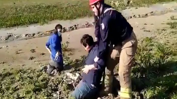 Haber ekibi, kendi çabaları ile kurtulamayınca itfaiye ekiplerinden yardım istendi.