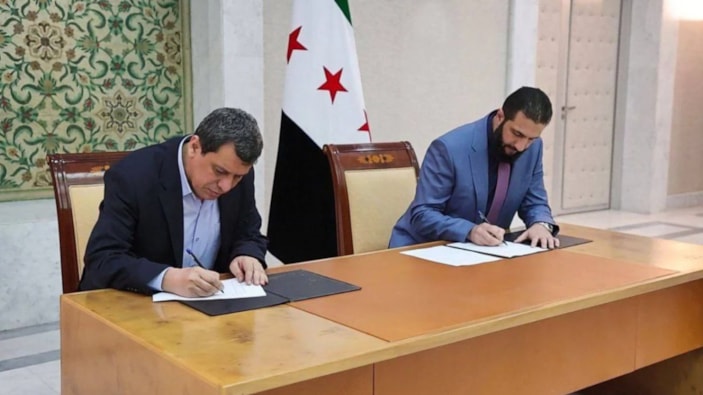Suriye Cumhurbaşkanlığından yapılan paylaşımda, Cumhurbaşkanı Ahmed Şara ile Ferhad Abdi Şahin arasında, Suriye topraklarının birliğini vurgulayan ve bölünmeyi reddeden bir anlaşmanın imzalandığı bildirildi.