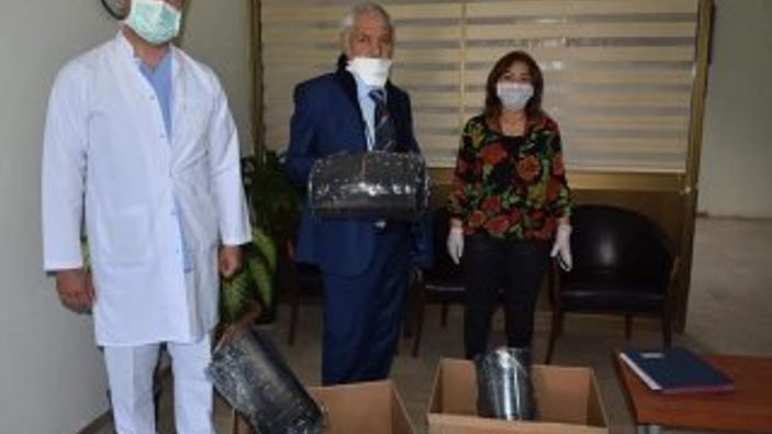 Şahin, burada Başhekim Emre Direk'e 100 adet siperliği teslim etti.