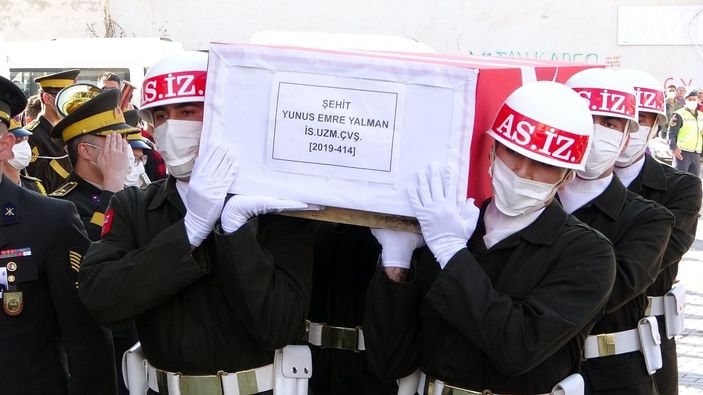 Yalman’ın tabutu askerler tarafından omuzlarda taşınırken, anne Meryem Yalman, baba Eyüp Yalman ve yakınları gözyaşı döktü.