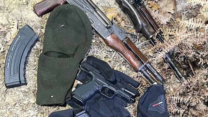 Şüphelilerin sorgusunda silahların yerini öğrenen ekipler, bölgede yaptıkları aramada 2 kalaşnikof tüfek, 2 tabanca ve kar maskesi, eldiven gibi ekipmanları ele geçirdi.