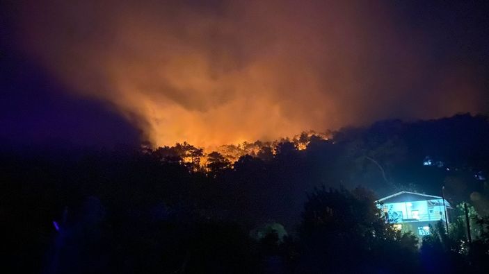 Dün gece bölgede tekrar alevlerin parlaması sonucu ekipler, sabah saatlerine kadar yangın söndürme çalışmalarına devam etti.