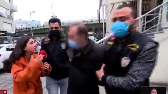 Tuğba Södekoğlu da mikrofonu kaptığı gibi emniyetten çıkarılan şahısla yüzleşmeye gitti.