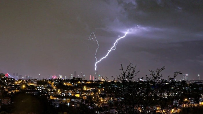 İstanbul'da gün boyu etkili olan sağanak yağış, hayatı durma noktasına getirdi. Trafik yoğunluğunun yüzde 95'e ulaştığı kentte şimşekler geceyi aydınlattı.