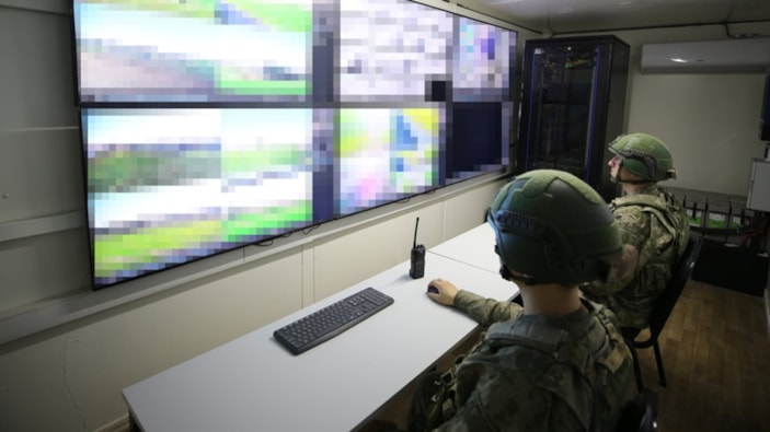 Hem gözetleme kulelerinde hem de Görüntü İzleme Merkezi'nde sınır hattını kesintisiz izleyen askerler, hudut hattında meydana gelen olayları drone'la tespit ederek hızla bölgeye intikal ediyor.