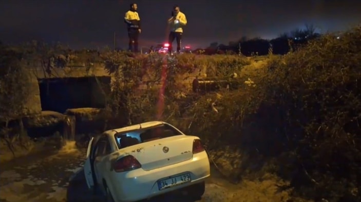 Otomobilin kanaldan çıkarılabilmesi için vinç kullanıldı.
