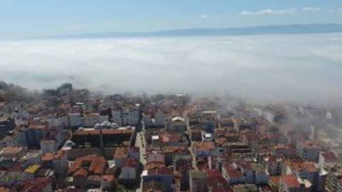 Kentin üzerini kaplayan sis bulutları görsel şölen sundu.
