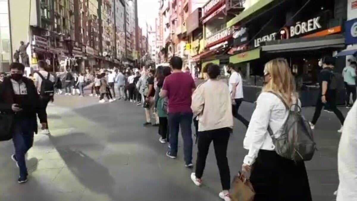 İstanbul Şirinevler'de sabah saatlerinde otobüs bekleyen yolcuların oluşturduğu metrelerce kuyruk, kameralara yansıdı.