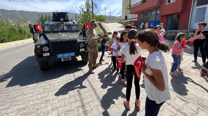Uludere ilçesine bağlı Şenobe ve Hilal karakol komutanlığına bağlı ekipler, 23 Nisan Ulusal Egemenlik ve Çocuk Bayramı münasebetiyle sokak sokak gezip çocukların bayramını kutladı.