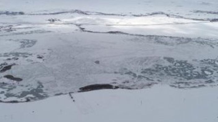 Sivas'ta göller buz tuttu VİDEO