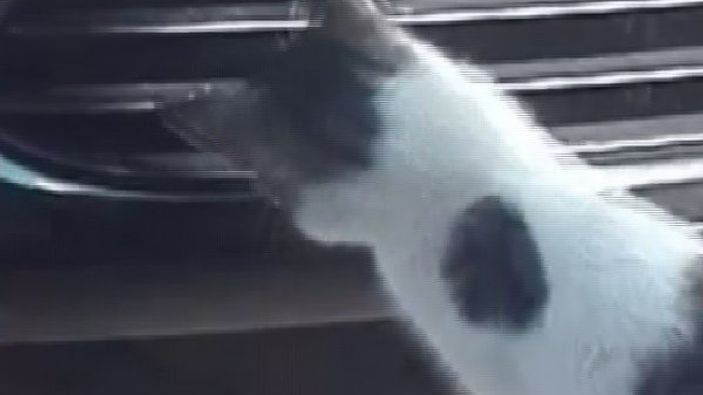 Park halindeki otomobilin ön kısmına giren serçenin peşini bırakmayan kedi, bir süre sonra serçeyi bulunduğu yerden patisiyle çıkararak yakaladı. Kedinin serçe avı Mutlu, tarafından görüntülendi.
