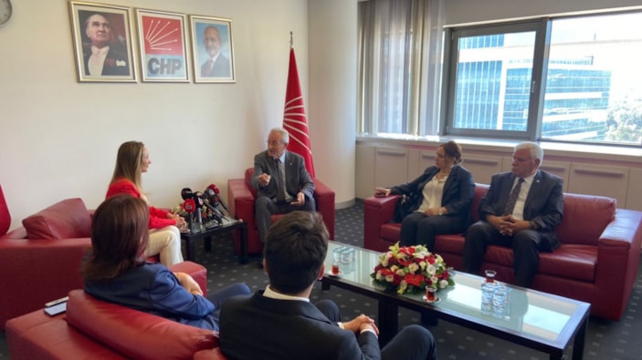 CHP Genel Merkezi'nde Kadın Kolları Genel Başkanı ve Parti Meclisi Üyesi Aylin Nazlıaka Ankara Milletvekili Aliye Timisi Ersever ile Gençlik Kolları MYK Üyesi Uygar Elitog ziyaretçileri karşılayacak heyet olarak yer aldı.