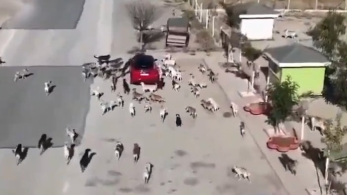 Yaşanan bu tehlikenin görüntüleri ise kan donduran cinsten. Başıboş köpekler adeta sokakları esir almış durumda.