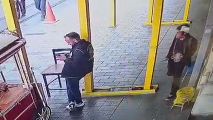 Görüntülerde saldırganın elindeki bıçakla polisin arkasından gelerek bıçakla saldırdığı ve sonrasında koşarak uzaklaştığı görülüyor.