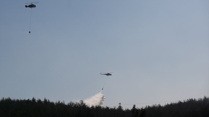 Akşam havanın kararmasıyla çalışmalara ara veren hava araçları, sabahın ilk ışıklarıyla yeniden mücadeleye başladı.