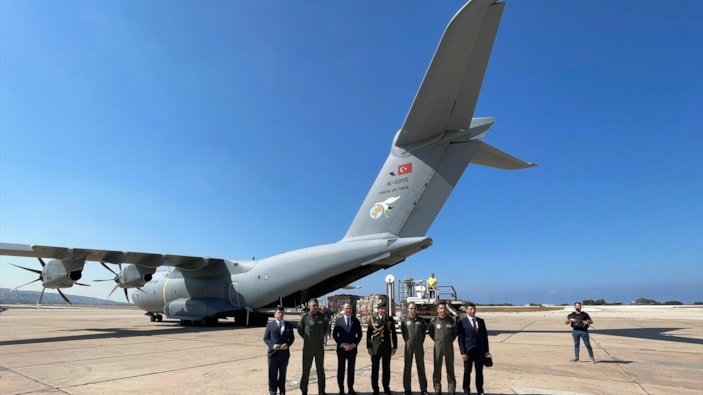 Türkiye'den Lübnan'a gönderilen ve içerisinde sağlık malzemelerinin bulunduğu Türk Silahlı Kuvvetleri'ne ait uçak Beyrut'a indi