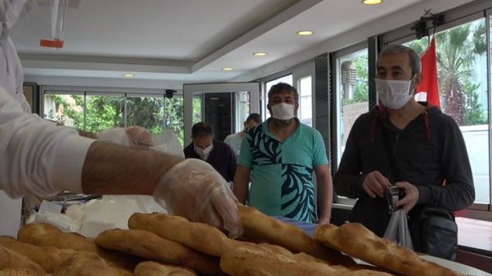 Sosyal mesafe kuralına uygun şekilde pide kuyruğu