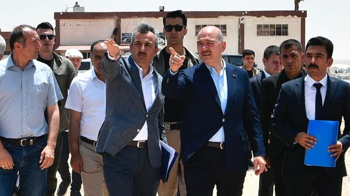 İçişleri Bakanı Süleyman Soylu, Suriye’nin Tel Abyad kentinde Suriyelilerin dönüşü için konutların yapılacağı güvenli bölgede incelemelerde bulundu.