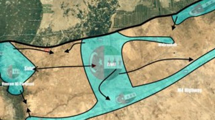 Yaşananların anlık olarak gösterildiği haritada Mehmetçik ve Suriye Milli Ordusu'nun kullandığı taktik, görenleri şaşırttı.