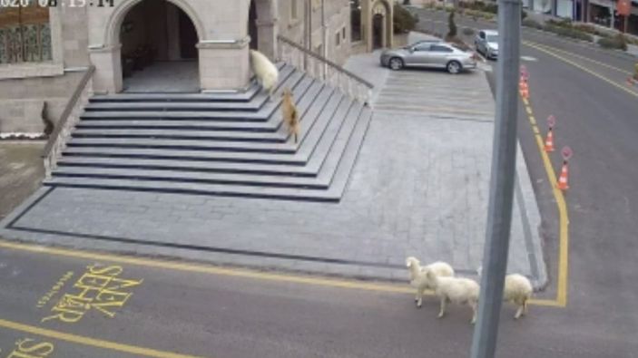 Nevşehir'de göre yolunda çoban Hasan Ünbulan'ın otlattığı sürüden kaçan bir koç, bir keçi ve üç koyun Nevşehir Belediyesi önüne geldi. Binaya girmeye çalışan koç, keçi ve koyunlara güvenlik görevlileri engel olmaya çalıştı.