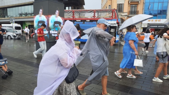 Taksim'de etkili yağışa yakalanan vatandaşlar zor anlar yaşadı