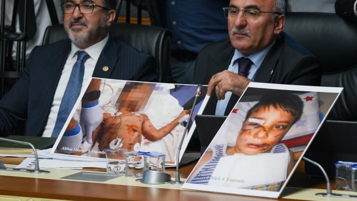 Görüşmeler sırasında komisyon salonundaki AK Parti milletvekilleri, sahipsiz köpeklerin saldırıları sonucu yaralanan ve hayatını kaybeden çocukların fotoğraflarını gösterdi.